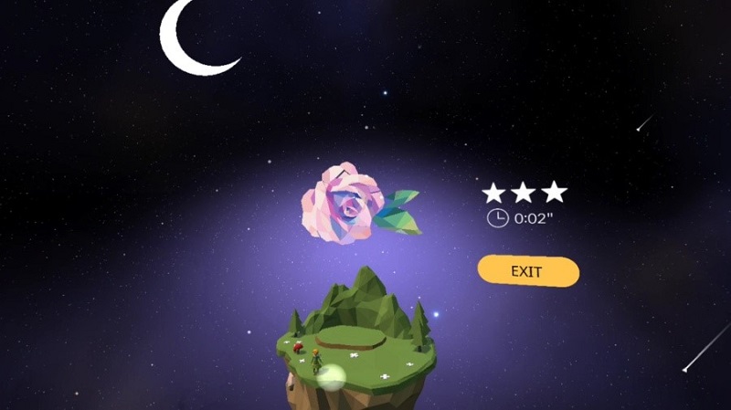 欣賞完精彩的影視內(nèi)容,我們在應(yīng)用商店里下載了幾款VR游戲。第一款體驗的作品《寶麗星辰》是一款畫風(fēng)非常可愛的解謎游戲。游戲的設(shè)定來自經(jīng)典小說《小王子》,在每一個關(guān)卡我們需要把破碎的圖片通過不同方向的旋轉(zhuǎn)最終拼接成一個完整圖案。這種玩法其實在PC平臺就已經(jīng)存在,不過用VR手柄進行操作的手感無疑更好、更具沉浸感。