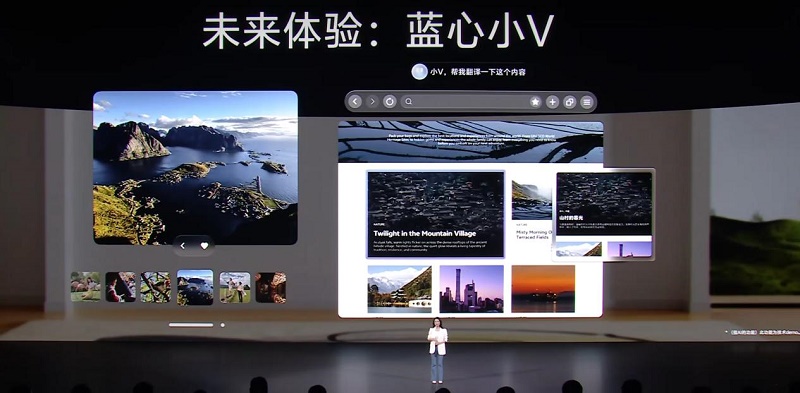 發(fā)布會上,vivo還展示了兩項未來體驗功能。一是“藍(lán)心小V”智能助手,現(xiàn)場演示中,用戶只需說出“小V,幫我翻譯一下這個內(nèi)容”,藍(lán)心小V便能快速將“山村的暮光”譯為“Twilight in the Mountain Village”,展現(xiàn)出強大的實時翻譯能力,未來有望在多場景為用戶提供智能服務(wù)。二是“影像無感互傳”功能,盡管目前該功能仍為技術(shù)demo,且需在同一vivo賬號的互聯(lián)條件下使用,但已展現(xiàn)出便捷影像傳輸?shù)臐摿Γ磥沓墒旌髮⒋蠓嵘脩粲跋穹窒硇省?