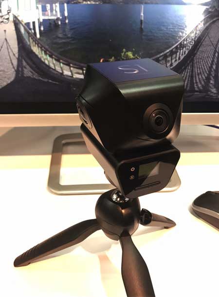 七維科技本次展示的360度全景視頻拍攝相機ViPano S1,有著精致小巧的機身,而且還是一款非常便攜的全景視頻拍攝相機,因此在做大型演出或者體育賽事的VR直播時,可以很好的在拍攝現(xiàn)場進行機位隱藏或者永久性布局在場館中;機身內(nèi)置專業(yè)級四目攝像機,最高可達6K畫質(zhì),符合極清電視需求;拍攝畫面可機內(nèi)實時拼接縫合,匯總成一路信號輸出,滿足廣電行業(yè)直播;索尼 Exmor CMOS保證了S1在緊湊尺寸的機身下仍能帶來更優(yōu)秀的畫質(zhì)和更為先進的功能;為了適配真人秀和旅行節(jié)目的VR直播,我們搭配了安霸A12S芯片,不僅能播放全高清和4K超高清視頻,還擁有先進的圖像穩(wěn)定功能; 內(nèi)置4個麥克風,立體音效果,保證了VR視頻拍攝時高質(zhì)量的錄音效果;通過手機APP進行操控,實現(xiàn)一鍵錄制,一鍵直播、一鍵分享。除了一個精巧、功能強大的攝影機之外,我們還為它配備了豐富的配件:包括三腳架、隨身箱。即日起,我們也將正式開放全球預售,為全世界的內(nèi)容創(chuàng)作者提供服務。