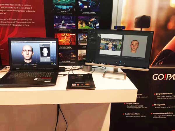 七維科技自主開發(fā)的面部捕捉軟件ViFace在本屆展會也第一次亮相,該軟件與市面上現(xiàn)有面部跟蹤系統(tǒng)相比更容易上手,可以輕松從掃描真實人物獲取面部表情并添加到三維臉模上,除超高精準度外且無延時,在從跟蹤的圖像中提取所需要的數(shù)據(jù)記錄下來。并且還擁有開放的端口,可以對接諸多軟件或平臺。同時ViFace與ViFace for Maya通過網(wǎng)絡數(shù)據(jù)流來同步產(chǎn)品主平臺中呈現(xiàn)的面部跟蹤進行連接,可用作制作影視或游戲里的動畫角色的面部表情,亦可支持實時互動地表情豐富的AR/VR的虛擬角色。