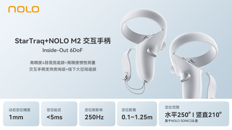 經(jīng)深度優(yōu)化,StarTraq具有良好的跨平臺(tái)可移植性,除了支持傳統(tǒng)的Qualcomm平臺(tái)外,還可應(yīng)用于Rockchip等算力平臺(tái),適配Android、Windows、Linux等各種操作系統(tǒng)。交互手柄NOLO M2可適配VR一體機(jī)、VR分體機(jī)、AR眼鏡等各種XR產(chǎn)品形態(tài)。同時(shí),通過(guò)對(duì)無(wú)線通信進(jìn)行了深度定制優(yōu)化,自動(dòng)感知WiFi干擾自適應(yīng)跳頻,NOLO M2手柄支持大空間多人同時(shí)使用6DoF交互。