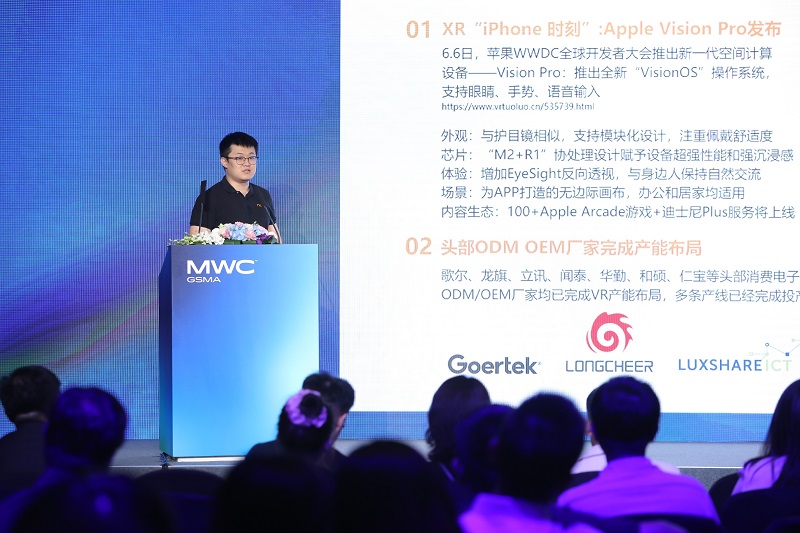 在大會(huì)現(xiàn)場(chǎng),張道寧提到蘋果公司W(wǎng)WDC大會(huì)發(fā)布Vsion Pro之后,為國(guó)內(nèi)XR廠商從業(yè)者奠定了XR終端設(shè)備發(fā)展的新形態(tài)之一:即分體式的設(shè)計(jì),超高清的分辨率屏幕和超薄光學(xué)方案,并且還配備眼動(dòng)追蹤、手勢(shì)以及語(yǔ)音指令相結(jié)合的交互方式,其后國(guó)內(nèi)廠商紛紛推出輕薄形態(tài)主打觀影功能的AR眼鏡。