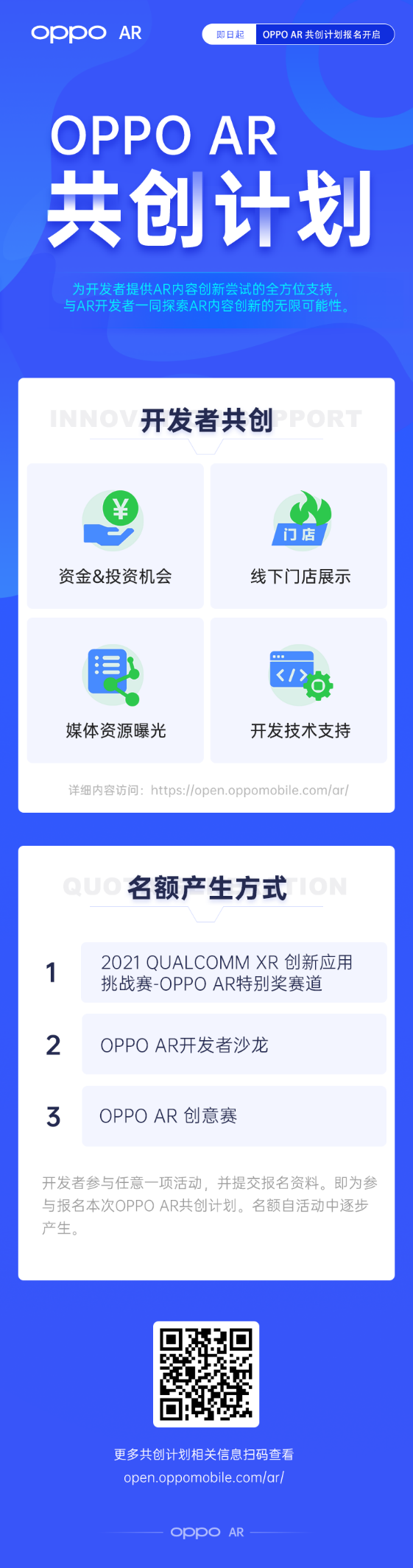 (2)線上曝光:入選開發(fā)者以及內(nèi)容將獲得OPPO提供的媒體曝光機會,參與OPPO AR內(nèi)外部營銷推廣活動。