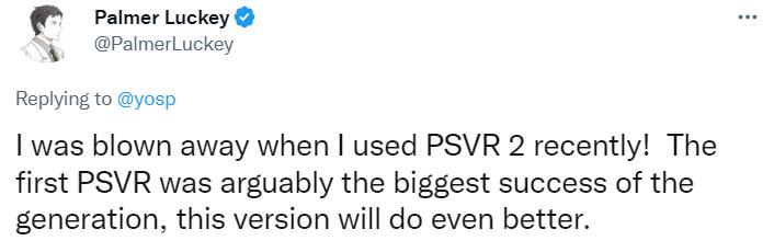 在Twitter上,Luckey表達(dá)了對(duì)PSVR 2的體驗(yàn)感受,“當(dāng)我使用PSVR 2時(shí),我被震撼到了!初代PSVR可以說(shuō)是成功的,而我相信PSVR 2也會(huì)做得更好?!?/p>