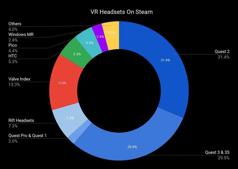 根據(jù)Valve公布的數(shù)據(jù)顯示,Quest 3與Quest 3S在SteamVR平臺的使用量于8月份出現(xiàn)激增。不過,這一現(xiàn)象究竟是數(shù)據(jù)誤判所致,還是與250美元的促銷價及Xbox聯(lián)名款的推出有關呢?