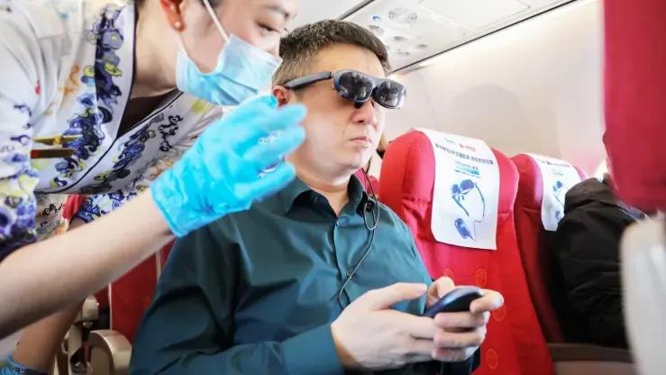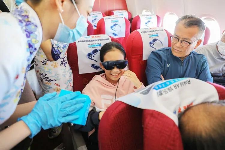 2月7日,從深圳飛往西安的海南航空HU7874航班上的乘客收獲了一份驚喜,通過Rokid AR眼鏡,乘客可享受360英寸無邊框屏幕、1080P分辨率和120Hz刷新率的3D電影,仿佛在30000英尺的高空擁有私人影院,從而獲得身臨其境的娛樂體驗。