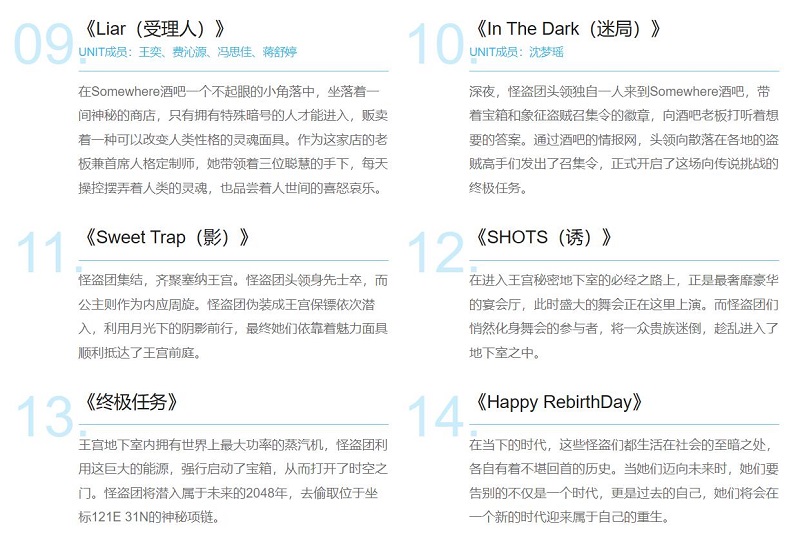 本次登陸“云觀(guān)賞”的公演是《終極任務(wù)》B版本巡演,共包含16首舞曲,為SNH48 Team HII第三臺(tái)原創(chuàng)公演《終極任務(wù)》中?,首演于2021年7月24日在上海SNH48星夢(mèng)劇院,歷經(jīng)團(tuán)隊(duì)多次打磨表演細(xì)節(jié),而場(chǎng)場(chǎng)爆滿(mǎn)的觀(guān)眾也證明了該劇目的精彩紛呈。