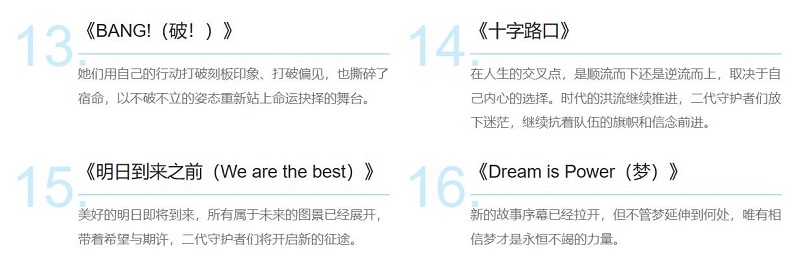 時(shí)光,傳遞緣分讓我們遇見(jiàn)。TEAM NII再次唱起記憶中的經(jīng)典旋律,將時(shí)間定格在2013年12月9日,引領(lǐng)我們回到過(guò)去,回到我們認(rèn)識(shí)的那一天。溫暖和諧的大家庭是TEAM NII的底色,“如果奇跡有顏色,那一定是紫色”。站在面臨抉擇的十字路口,赤手空拳闖蕩的開(kāi)拓者們,選擇一往無(wú)前朝前走。她們擊潰過(guò)夢(mèng)魘,也撕碎過(guò)幻滅,在時(shí)代的滾滾洪流面前,她們是獨(dú)一無(wú)二的唯一,更是當(dāng)之無(wú)愧的中流砥柱。永不妥協(xié)的她們驗(yàn)證了“夢(mèng)永生不滅”。十年荏苒,時(shí)光載著我們?yōu)g覽TEAM NII曾經(jīng)青春的年華,這支帶給我們無(wú)數(shù)感動(dòng)的隊(duì)伍,讓人熱淚盈眶,更讓人肅然起敬。You are the best , Team NII!