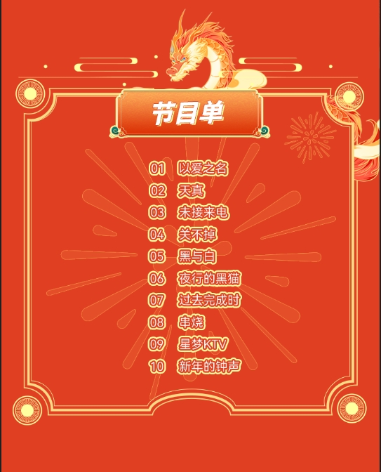 以下是本次公演舞臺(tái)節(jié)目清單: