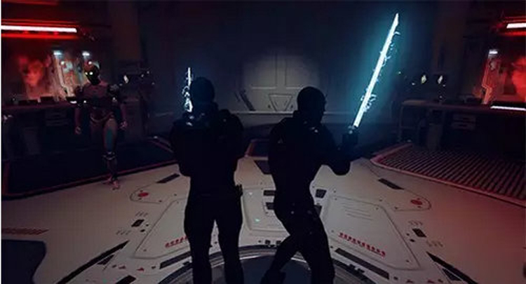 在游戲初始階段時,你只有一支別在腰上的匕首和一把扛在背后的光劍。只要握緊你手中的Vive手柄,你就能同時握持這兩把武器。手柄上的扳機鍵用來開槍或伸出光劍,而額外按鍵則可以讓你進入子彈時間以完成幾個爆頭動作。