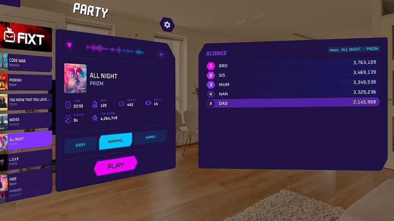 「Synth Riders」中的所有歌曲都將支持混合現(xiàn)實模式,包括自定義社區(qū)制作的曲目。10月12日更新推出之后,混合現(xiàn)實模式將上線Meta Quest 2、Quest Pro和Meta Quest 3平臺,Kluge Interactive透露,Quest Pro和Quest 3的彩色直通功能將使游戲“體驗更佳”。