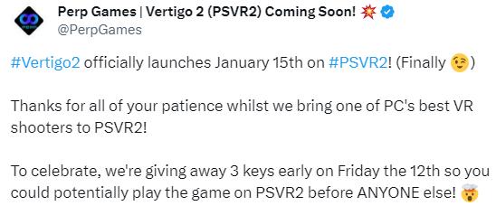 VR動(dòng)作冒險(xiǎn)游戲「Vertigo 2」原計(jì)劃于去年10月24日發(fā)售,但推遲到了去年12月12日發(fā)售。然而,在進(jìn)一步推遲之后,發(fā)行商Perp Games現(xiàn)宣布「Vertigo 2」將于1月15日發(fā)布數(shù)字版,登陸PS VR2平臺(tái)。