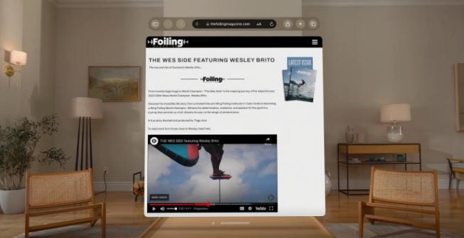 在visionOS 2中,Safari支持在虛擬環(huán)境巨大虛擬屏幕上播放全屏視頻,包括YouTube和 Netflix內容。