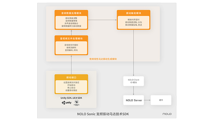 說到這里,張佳寧開始向我們介紹,這顆NOLO VR所提供的創(chuàng)新型寬頻線性振動馬達技術SDK特點——基于音頻文件自動采樣生成的SDK。