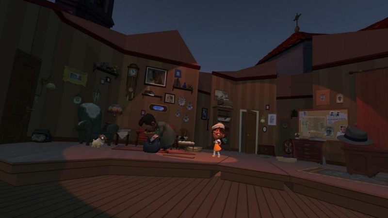 這部VR作品的一大特色便是其基于6DoF技術(shù)的高自由度交互觀賞形式。與我們以往觀看傳統(tǒng)2D影片的體驗不同,在這部6DoF交互VR作品中,觀眾可以完全融入到劇情當中。你可以在影片搭建的場景中隨意走動,四處查看,而且借助其高自由度的交互設(shè)計,你甚至可以與場景中的角色和物品進行直接互動。作品完全可以讓觀眾相信——我就是這個故事當中的一員,我就是羅拉的朋友,我正在幫助羅拉解開她叔叔的謎團。而在傳統(tǒng)2D影片中,無論劇情如何引人入勝,觀眾也始終只能以一個局外人、旁觀者的身份去觀看電影,并不能與影片產(chǎn)生互動,在趣味性方面就遠不及VR電影了。
