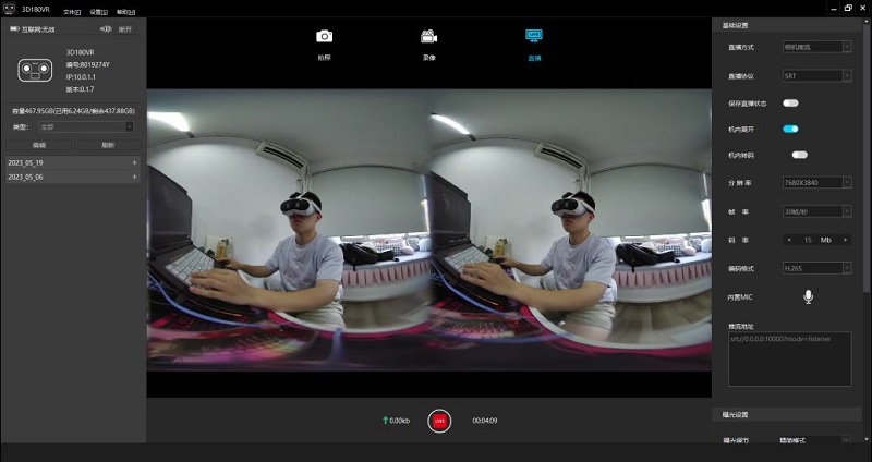 為了進一步查看實際直播中的情況,我在客服的指引下在PICO 4頭顯中安裝了泰科易專用的直播效果預覽軟件,然后將頭顯與相機的網(wǎng)絡相連接,就可以從頭顯端預覽實際直播的畫面了。