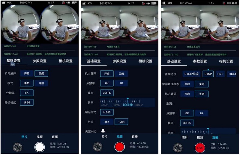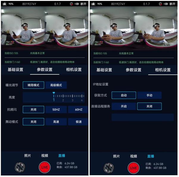客服首先指引我在手機(電腦也可以)下載了「3D180VR」的專用控制軟件,通過相機自帶的Wifi即可與手機相連,手機與相機連接后便可從手機屏幕觀測相機的畫面拍攝情況,同時可遠程控制相機進行拍攝或直播。這樣的“懶人”操作方式對直播新手來說還是十分友好的。