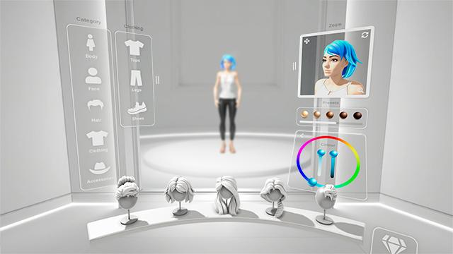 「Many Worlds VR」用戶可在私人虛擬衣櫥創(chuàng)建全身虛擬化身,并自由靈活選擇身體體型、衣服、頭發(fā)、配飾以及相應顏色,不僅如此,用戶還能基于衣櫥定制在冒險中發(fā)現(xiàn)的新物品。