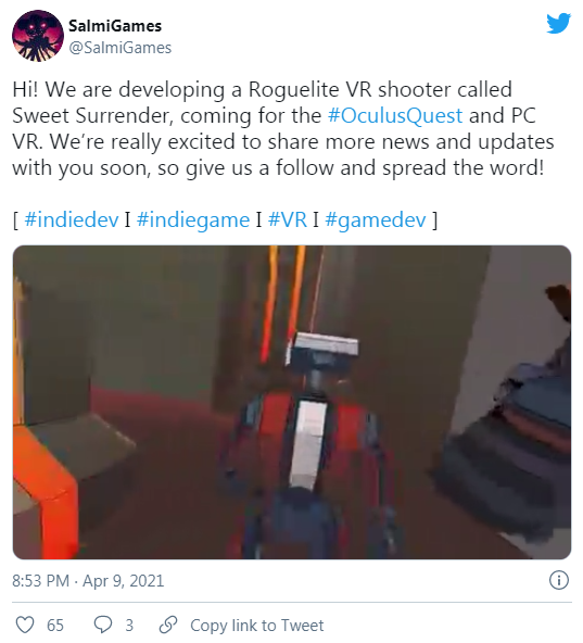 據(jù)外媒UploadVR報道,「Growrilla」開發(fā)商美國游戲工作室Salmi Games宣布將于今年下半年發(fā)布旗下VR roguelite游戲「Sweet Surrender」,本作將登陸Steam及Oculus Quest平臺。