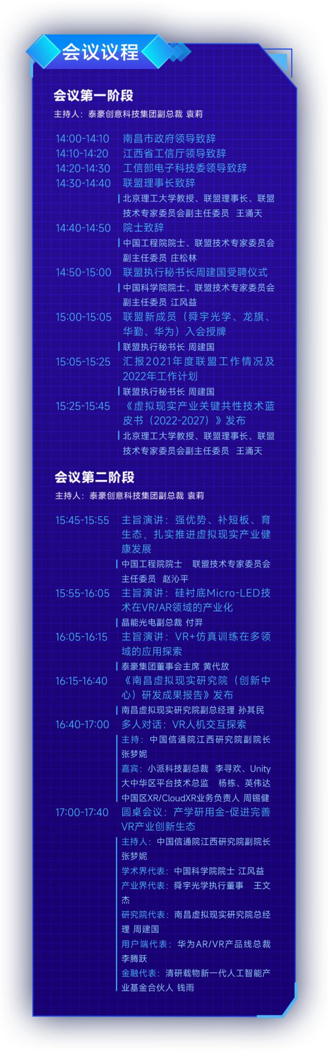 會議的后半場,中國工程院院士、聯(lián)盟技術(shù)專家委員會主任委員 趙沁平,晶能光電副總裁付羿、泰豪集團董事會主席黃代放、南昌虛擬現(xiàn)實研究院副總經(jīng)理孫其民等重量級嘉賓將進行精彩演講,剖析產(chǎn)業(yè)動態(tài),分享最新創(chuàng)新與商業(yè)化應(yīng)用成果。