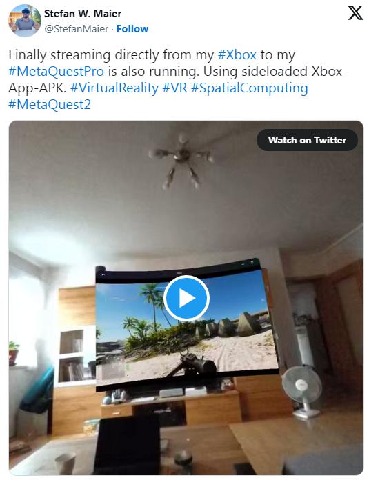 PS5的成功測(cè)試激發(fā)了VR愛(ài)好者和Twitter用戶Stefan W. Maier在Xbox上進(jìn)行同樣的嘗試。